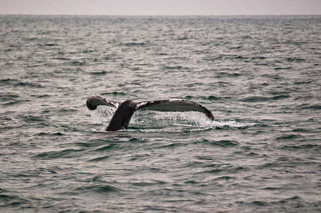Der obligatorische Buckelwal auf See vor Húsavík, Island. (Juni 2016)