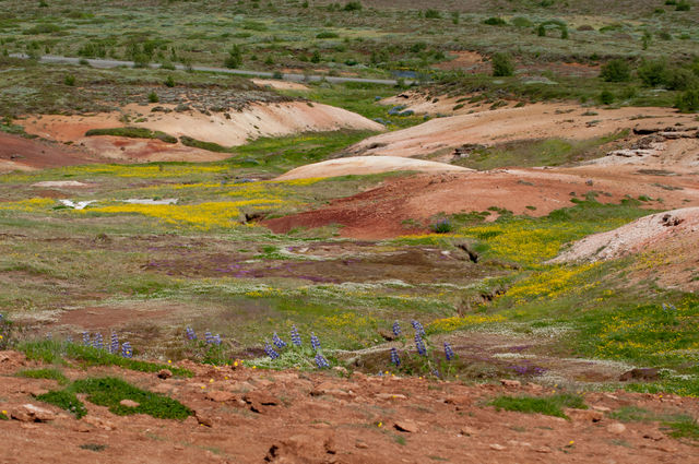 Einsame Lupinchen am ständig spuckenden Geysir in Haukadalur. (Juni 2016)